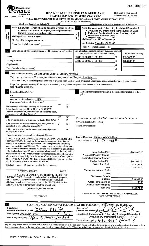 | 3 | 04/18/2019 | WD | Warranty Deed | ALLEN TRUSTEE, BARBARA | REIERSON, PETER VERNON | | | $575,000.00 | 38495 | 4463304 |