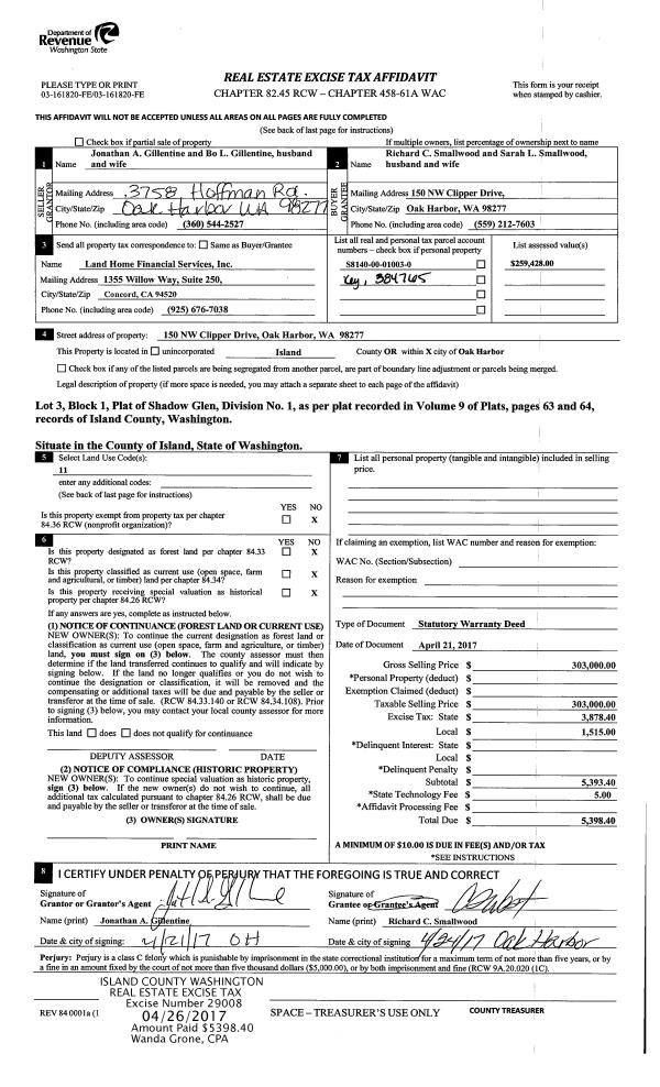 | Mailing Address: | PO BOX 764 COUPEVILLE, WA 98239 | % Ownership: | 100.0000000000% |