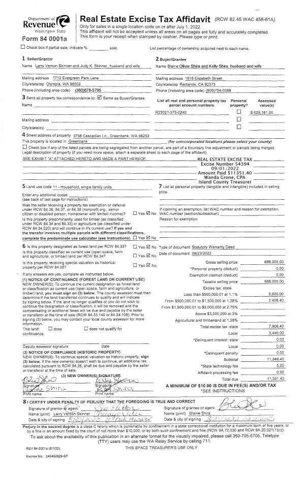| 1 | 05/25/2021 | WD | Warranty Deed | TIEN YUN INVESTMENTS LLC | CAMANO PROPERTIES II, LLC | | | $577,500.00 | 48555 | 4520979 |