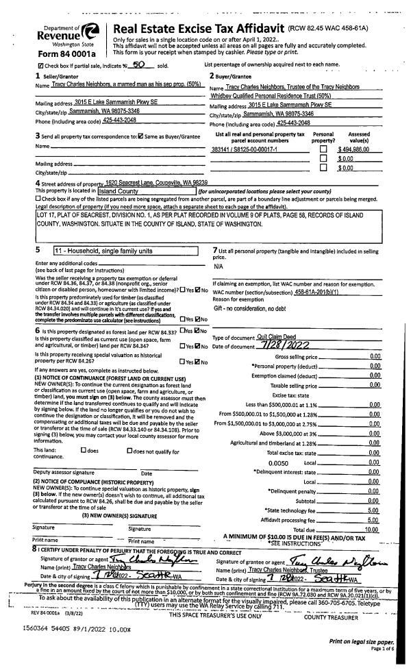 | Mailing Address: | 848 N SUNRISE BLVD STE B #150 CAMANO ISLAND, WA 98282 | % Ownership: | 100.0000000000% |