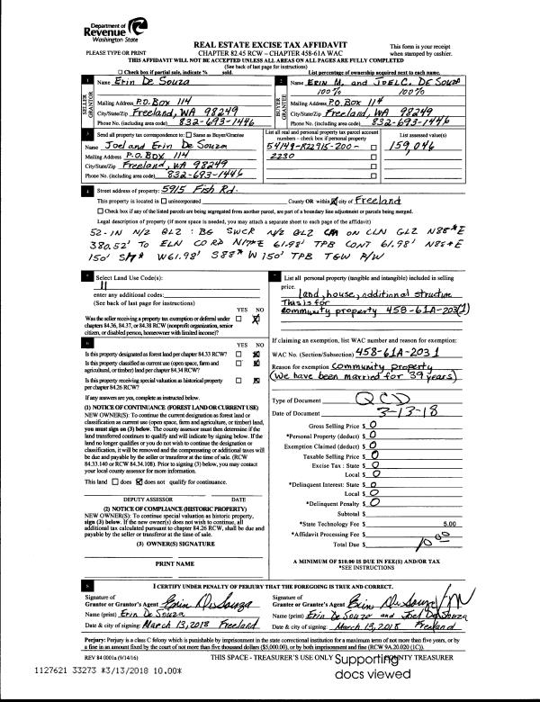 | Mailing Address: | 1068 CHEZ MOI LN CAMANO ISLAND, WA 98282 | % Ownership: | 100.0000000000% |