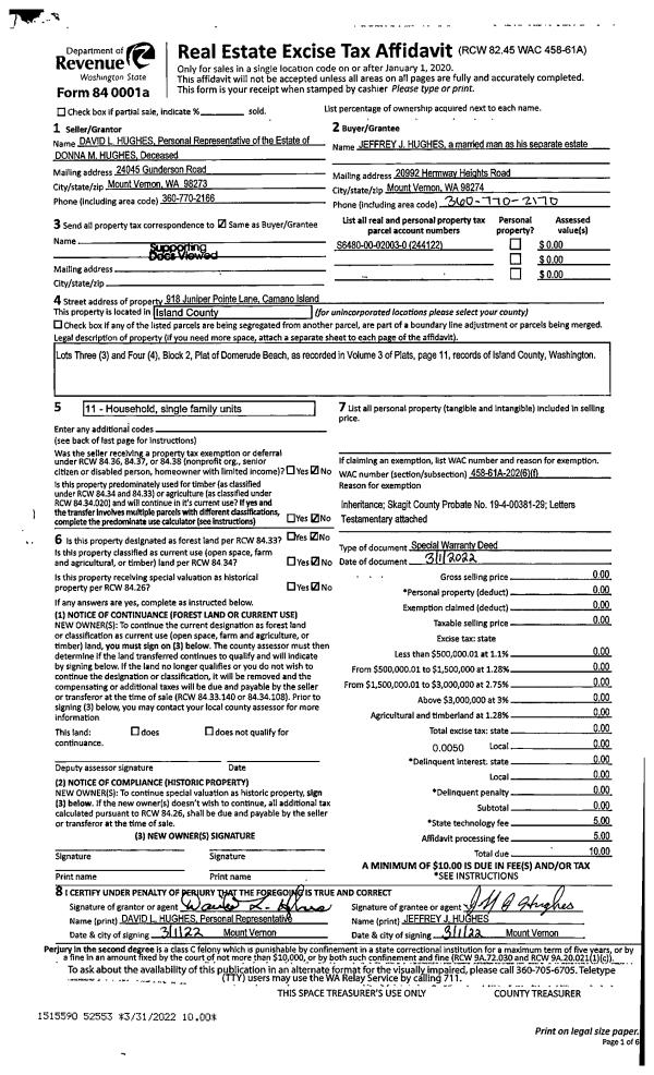 | Mailing Address: | 1069 ELLIE LN CAMANO ISLAND, WA 98282 | % Ownership: | 100.0000000000% |