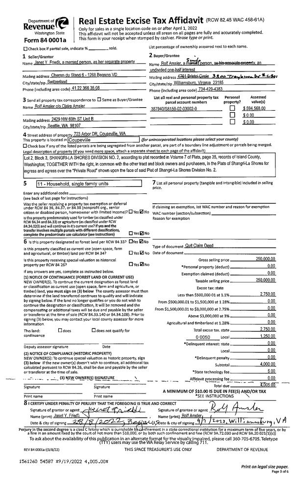 | Mailing Address: | SAMANTHA M SMOTHERMON 1058 CHEZ MOI LN CAMANO ISLAND, WA 98282-7573 | % Ownership: | 100.0000000000% |