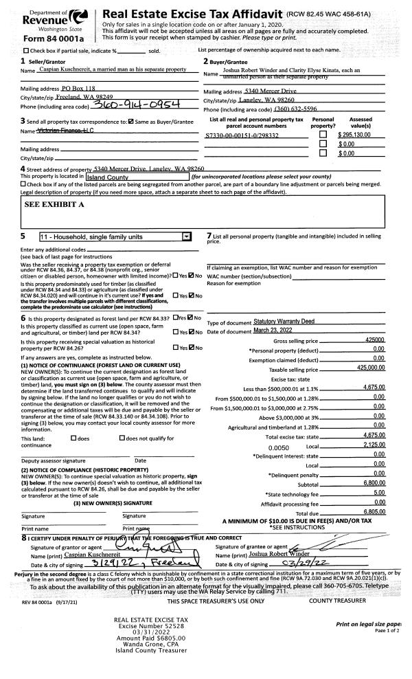 | Mailing Address: | KATHLEEN M O'NEILL-SHELL 1499 SE 9TH AVE #302 OAK HARBOR, WA 98277 | % Ownership: | 100.0000000000% |