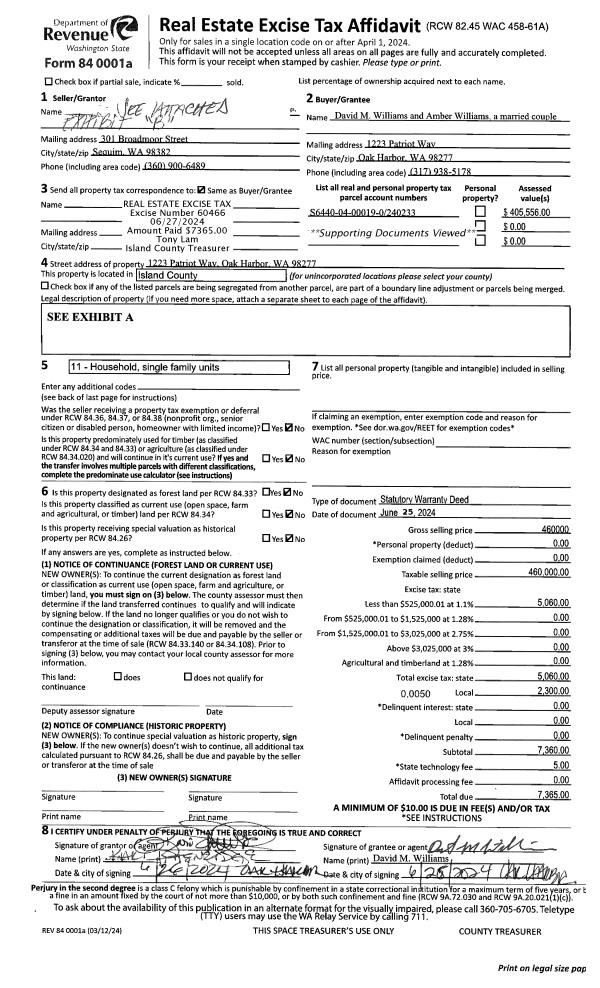 | Mailing Address: | PATRICIA M KUENZI 1499 SE 9TH AVE APT 304 OAK HARBOR, WA 98277 | % Ownership: | 100.0000000000% |