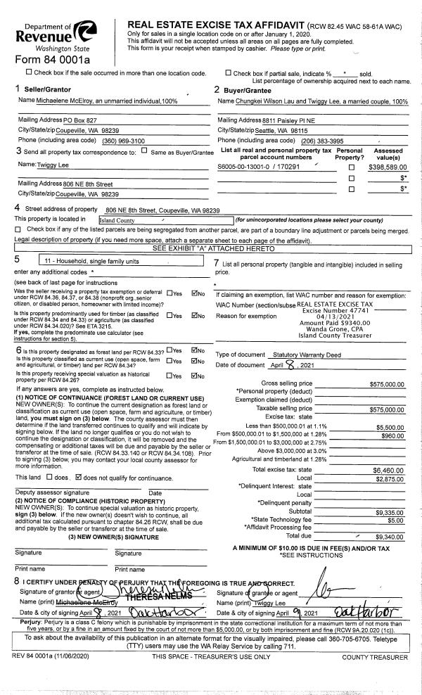 | Tax Area: | 719 - APPRAISER-S Whid Schl Dist, outside Langley, vacant & 50 acres or less | Land Use Code | 91 |