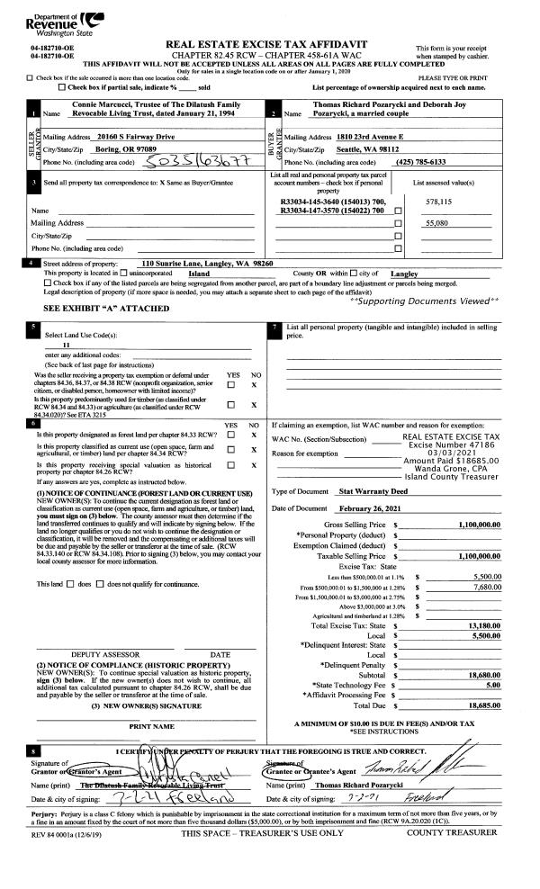 | Mailing Address: | 2964 UMATILLA DR OAK HARBOR, WA 98277 | % Ownership: | 100.0000000000% |