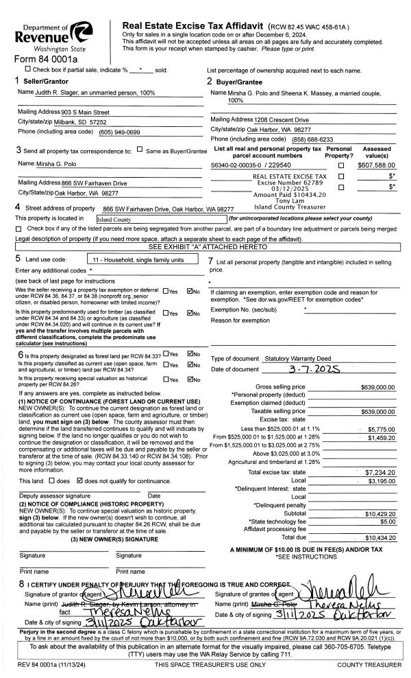 | Mailing Address: | LADONNA J KENNY 29968 SR 525 COUPEVILLE, WA 98239 | % Ownership: | 100.0000000000% |