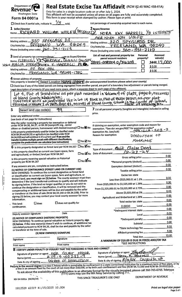 | Mailing Address: | JULIE ANN ROCKWELL WILSON PO BOX 22 COUPEVILLE, WA 98239 | % Ownership: | 100.0000000000% |