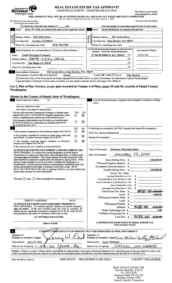 | 1 | 12/30/1999 | WD | Warranty Deed | H & H PROPERTIES, | USELESS BAY GCC INC, | | | $6,334.00 | 52 | 20000375 |