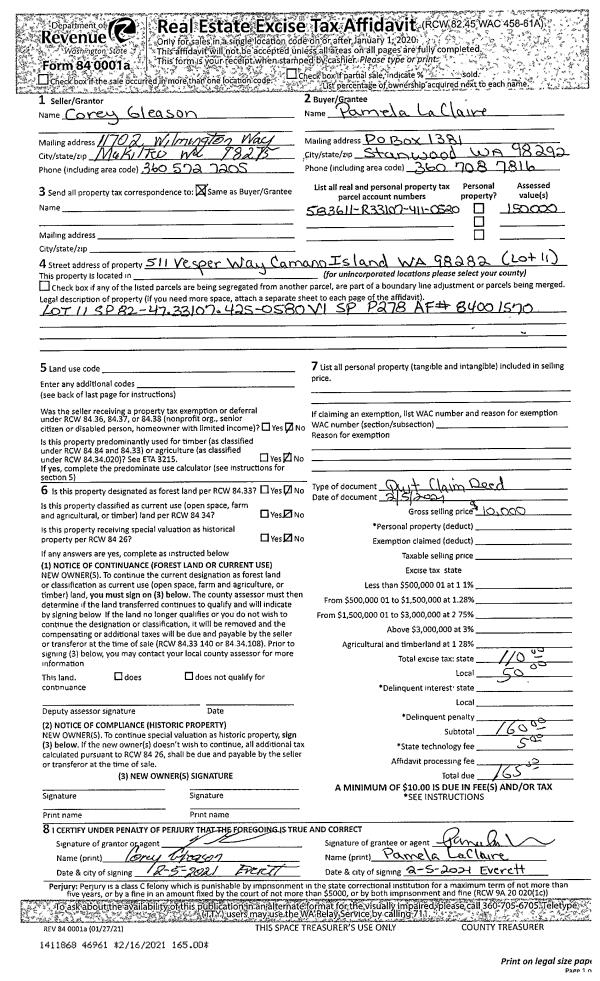 | Tax Area: | 712 - APPRAISER-S Whid Schl Dist, outside Langley, improved, greater than 1 acre | Land Use Code | 88 |