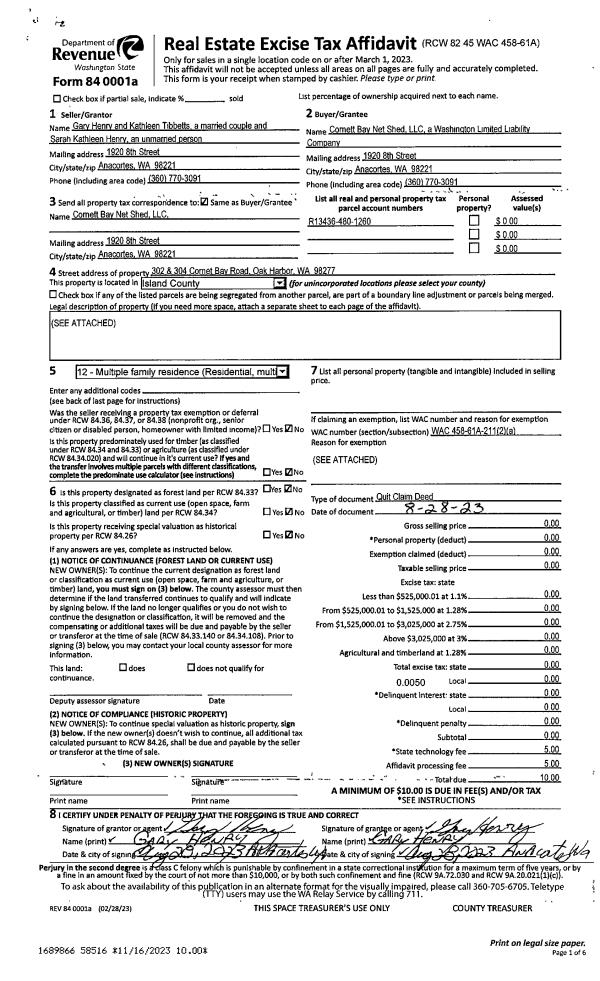 | Mailing Address: | MARIA D ORECCHIONI 739 SOUTHWEST PUFFIN ST OAK HARBOR, WA 98277 | % Ownership: | 100.0000000000% |