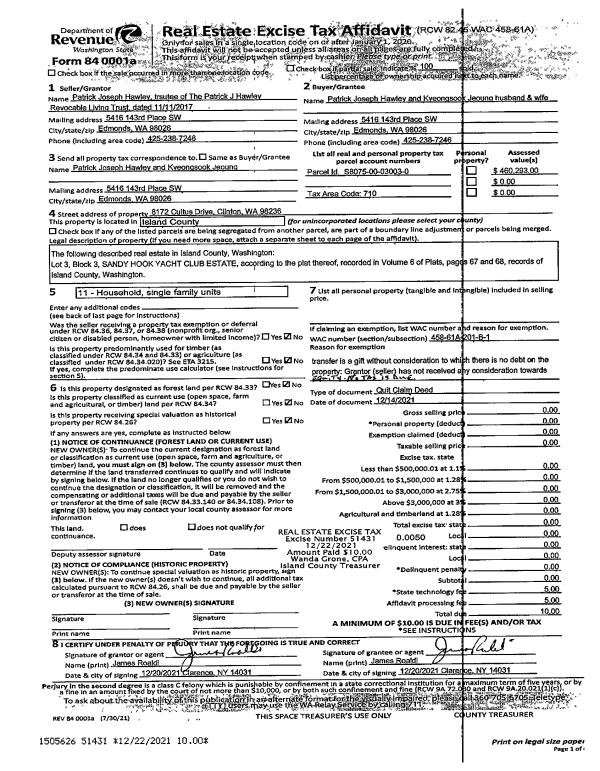 | Mailing Address: | 1468 SW 7TH AVE OAK HARBOR, WA 98277 | % Ownership: | 100.0000000000% |
