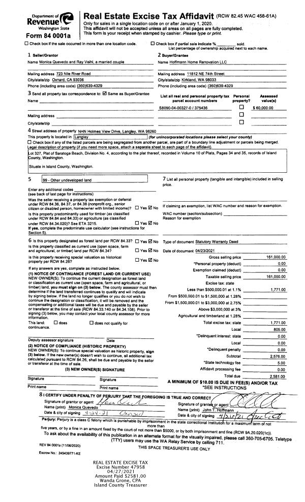 | Tax Area: | 710 - APPRAISER-S Whid Schl Dist, outside Langley, improved & 1 acre or less | Land Use Code | 11 |