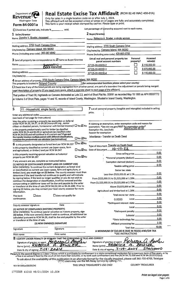 | Mailing Address: | CARRIE A STUCKY 967 SW SILVERBERRY ST OAK HARBOR, WA 98277 | % Ownership: | 100.0000000000% |