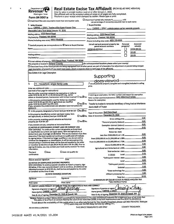 | 1 | 10/30/2019 | QCD | Quit Claim Deed | TENNIS, STEVEN J | TENNIS JTWROS, STEVEN J | | | $0.00 | 41030 | 4475153 |