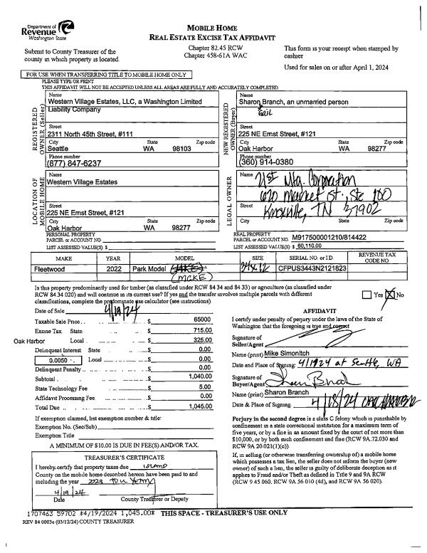 | Mailing Address: | SUE ANN LAGE 2046 DOE DR OAK HARBOR, WA 98277 | % Ownership: | 100.0000000000% |
