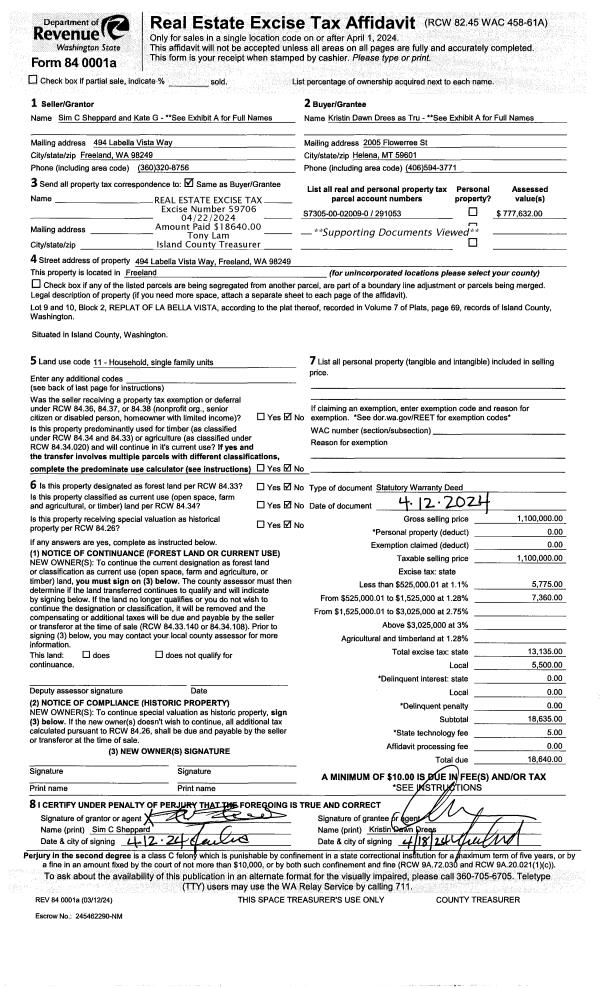 | Mailing Address: | CYNTHIA L SEBASTIAN TTEE 2063 DOE DR OAK HARBOR, WA 98277 | % Ownership: | 100.0000000000% |