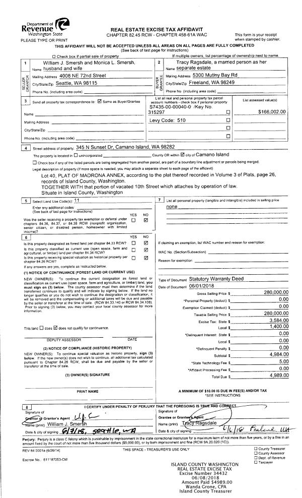| Mailing Address: | JOAN POWERS HINDMON 355 SW 6TH AVE OAK HARBOR, WA 98277 | % Ownership: | 100.0000000000% |