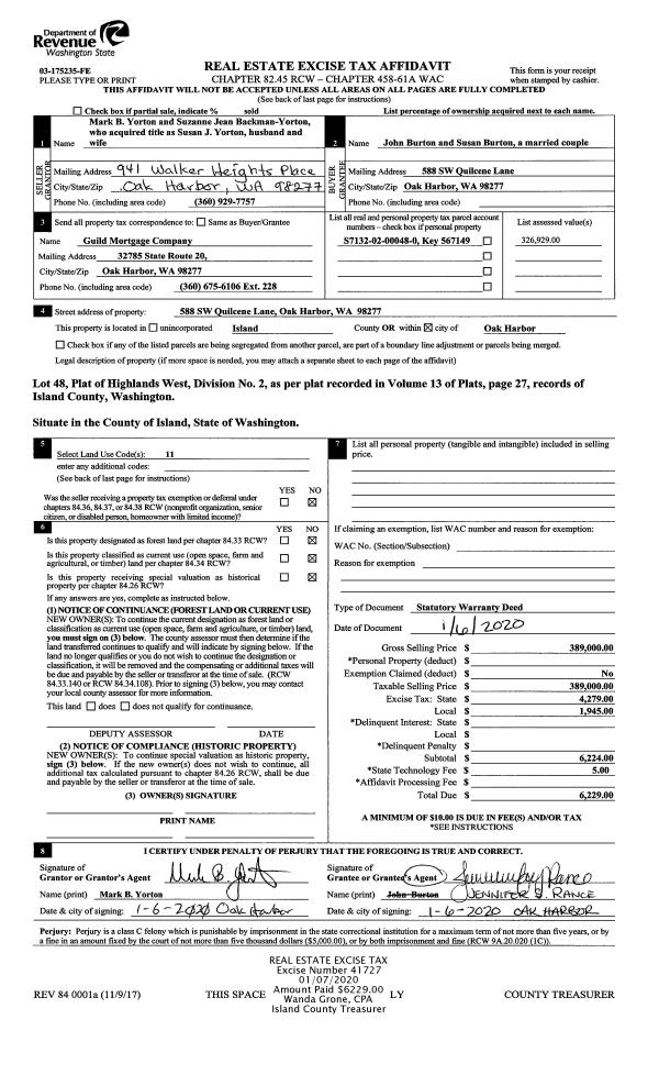 | 1 | 05/17/2019 | EZ | Easement | SWANSON, STEPHEN L | TOWN OF COUPEVILLE | | | $100.00 | 41140 | 4475783 |