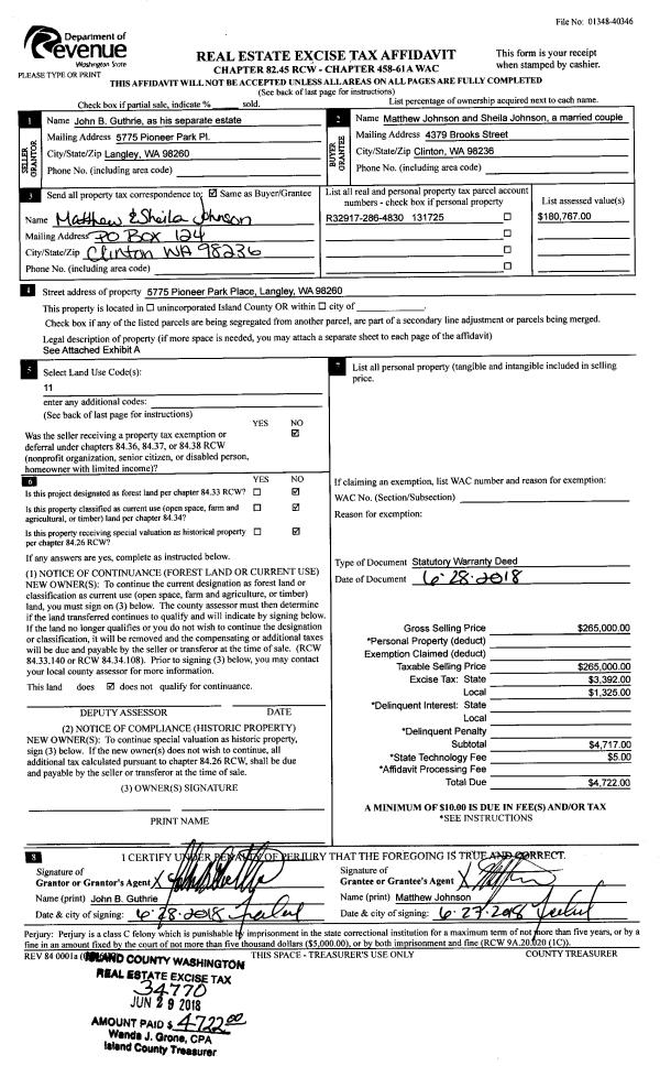 | 2 | 10/24/2018 | WD | Warranty Deed | DREWS, HAROLD R | STOVER, KATHLEEN A | | | $250,000.00 | 36457 | 4454169 |