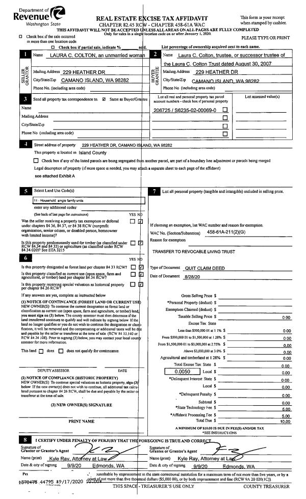 | 1 | 08/28/2024 | EZ | Easement | STARBUCK, JOHN D | PUGET SOUND ENERGY | | | $11,588.00 | 61400 | 4577592 |