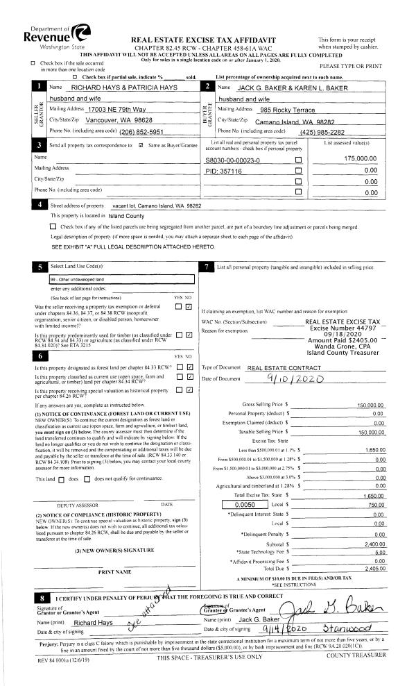 | 1 | 08/28/2024 | EZ | Easement | STARBUCK, JOHN D | PUGET SOUND ENERGY | | | $11,588.00 | 61400 | 4577592 |