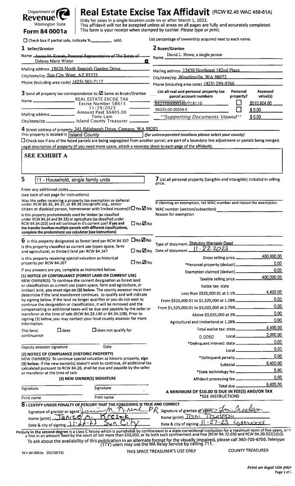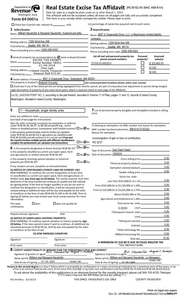 | Mailing Address: | 700 NW CROSBY AVE #8 OAK HARBOR, WA 98277 | % Ownership: | 100.0000000000% |