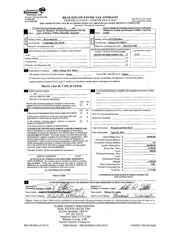 | Tax Area: | 712 - APPRAISER-S Whid Schl Dist, outside Langley, improved, greater than 1 acre | Land Use Code | 11 |