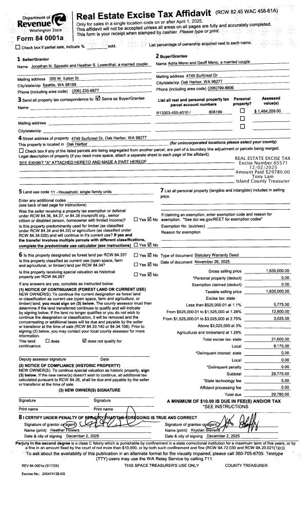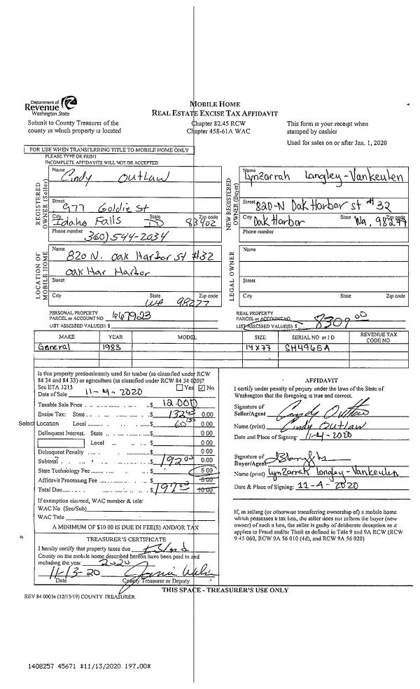 | Mailing Address: | KOWANDA L RICHARDSON 4504 DUGUALLA VIEW DR OAK HARBOR, WA 98277 | % Ownership: | 100.0000000000% |