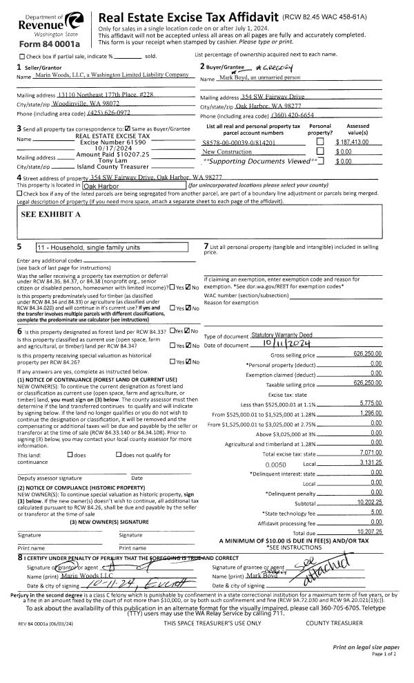 | Mailing Address: | 867 4TH ST CAMANO ISLAND, WA 98282 | % Ownership: | 100.0000000000% |