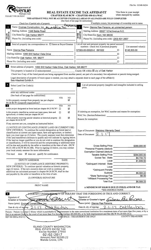 | 6 | 02/08/2017 | WD | Warranty Deed | HOLTON TRUSTEE, DANIEL T | HOLTON TRUSTEE, DANIEL T | | | $0.00 | 28043 | 4416872 |