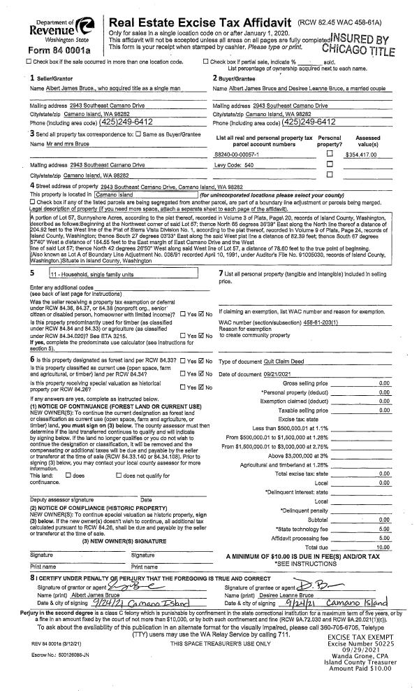 | Mailing Address: | IDONNA LYNN PIEPER NELSON TTEE 2408 S CAMANO DR CAMANO ISLAND, WA 98282 | % Ownership: | 100.0000000000% |