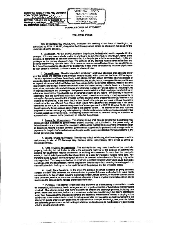 | Mailing Address: | RACHEL PRICE-RAYNER 580 FORT CASEY RD COUPEVILLE, WA 98239 | % Ownership: | 100.0000000000% |