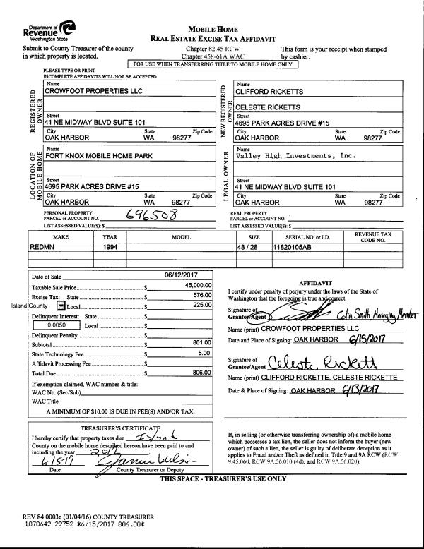 | Mailing Address: | DONNA E JESSER 370 NE CAMANO DR SUITE 5 PMB 44 CAMANO ISLAND, WA 98282-7279 | % Ownership: | 100.0000000000% |