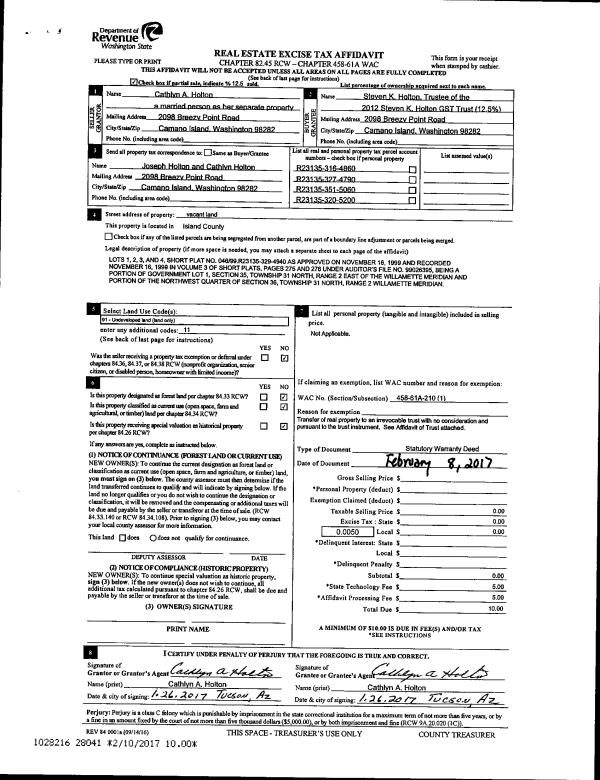 | Mailing Address: | 795 HOMESTEAD PLACE CAMANO ISLAND, WA 98282 | % Ownership: | 100.0000000000% |