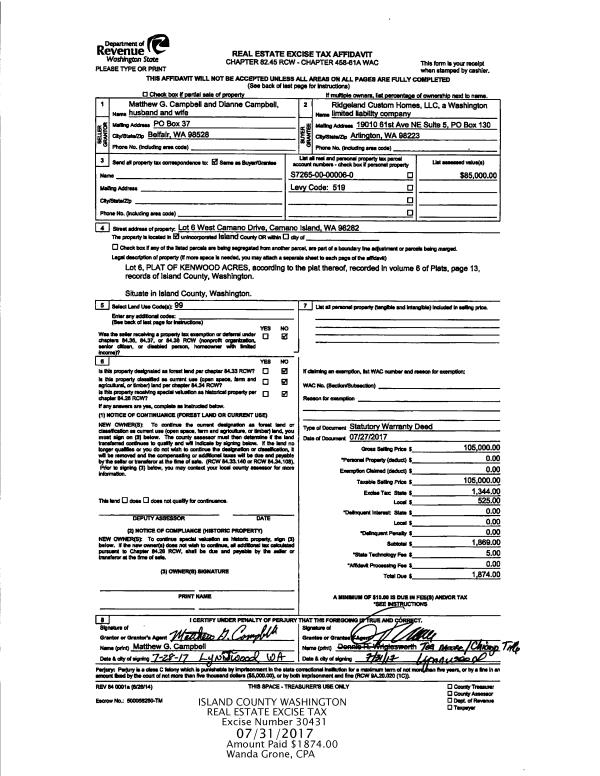 | Mailing Address: | 280 GOUGH DR CAMANO ISLAND, WA 98282 | % Ownership: | 100.0000000000% |