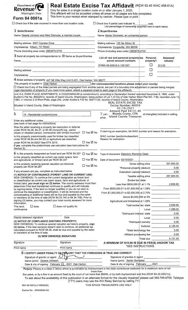 | Tax Area: | 712 - APPRAISER-S Whid Schl Dist, outside Langley, improved, greater than 1 acre | Land Use Code | 11 |