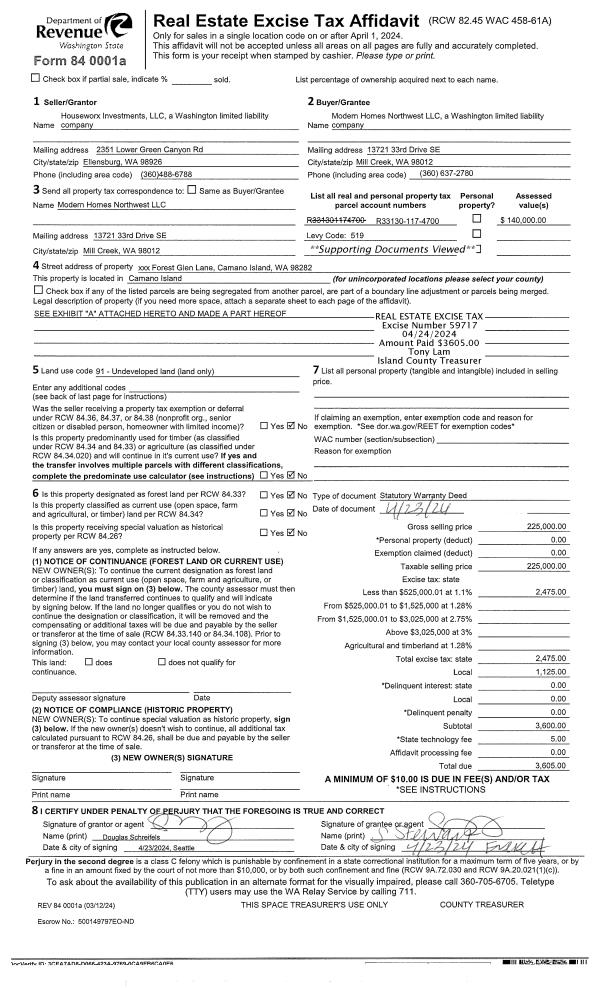 | Mailing Address: | 846 PARK AVE OAK HARBOR, WA 98277 | % Ownership: | 100.0000000000% |