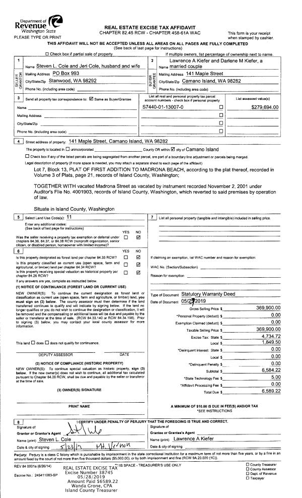 | Mailing Address: | CRAIG W HAWORTH 534 BRINDLE PL CAMANO ISLAND, WA 98282 | % Ownership: | 100.0000000000% |