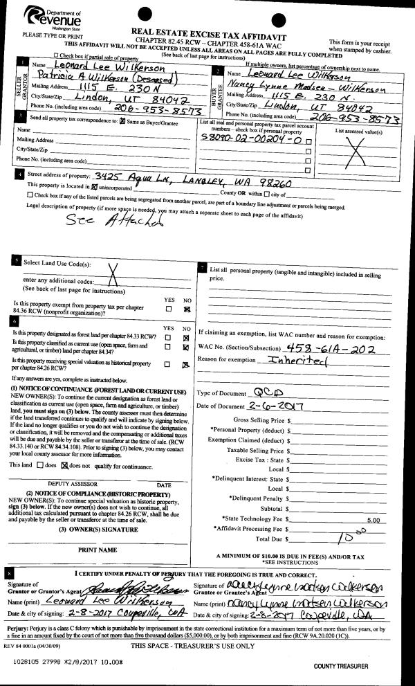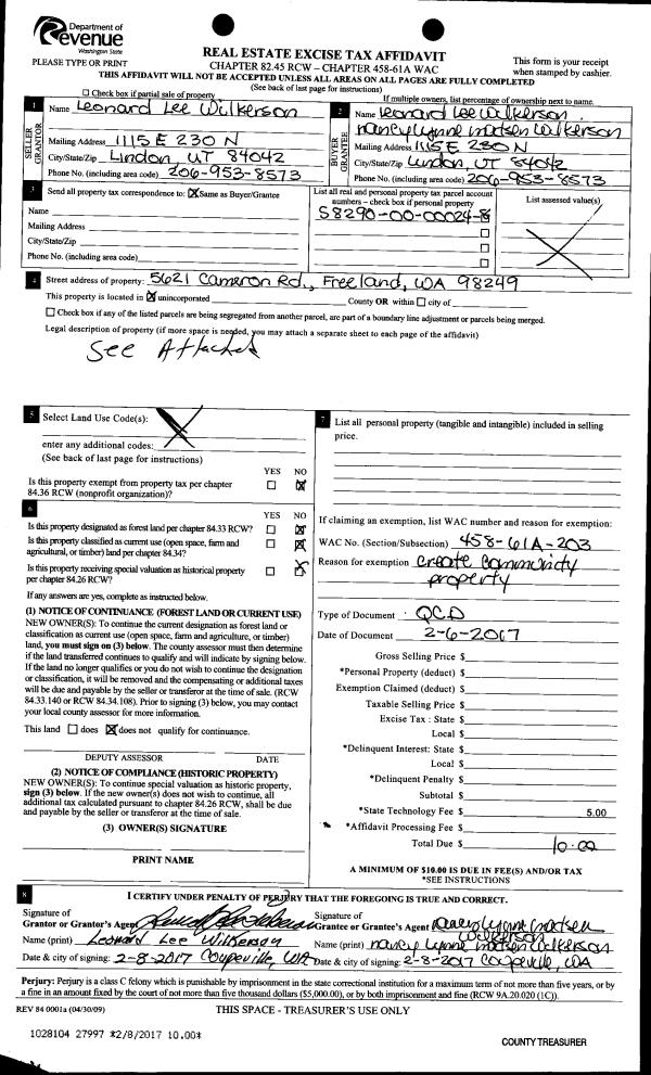 | Mailing Address: | 470 SW REGENCY DR OAK HARBOR, WA 98277 | % Ownership: | 100.0000000000% |