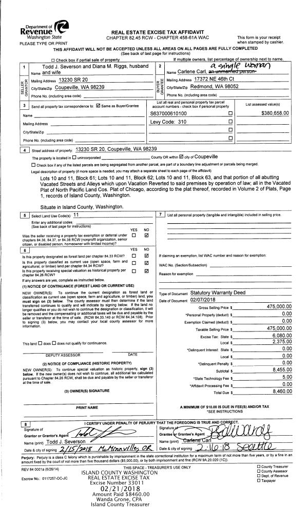 | Mailing Address: | 545 SW REGENCY DR OAK HARBOR, WA 98277 | % Ownership: | 100.0000000000% |