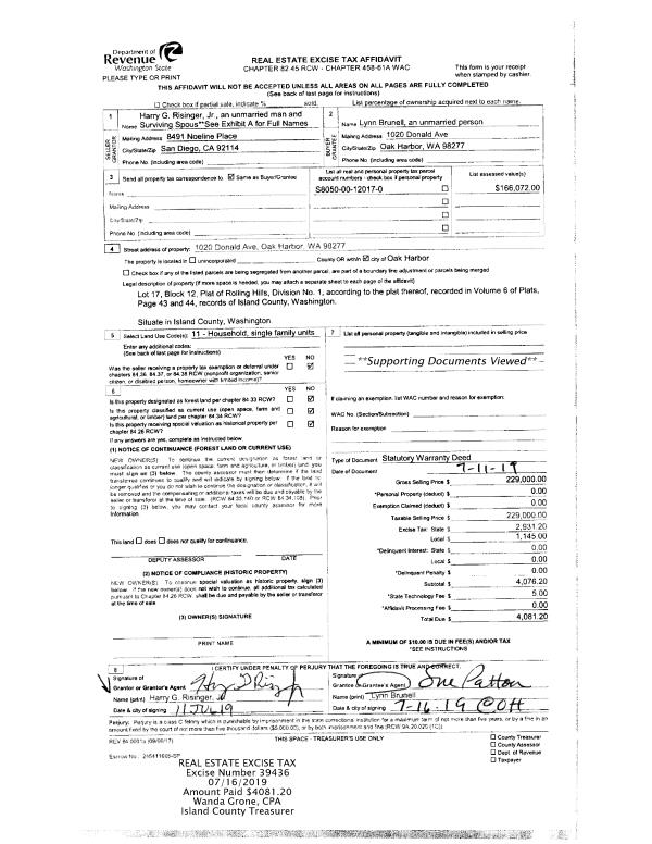 | Tax Area: | 712 - APPRAISER-S Whid Schl Dist, outside Langley, improved, greater than 1 acre | Land Use Code | 11 |