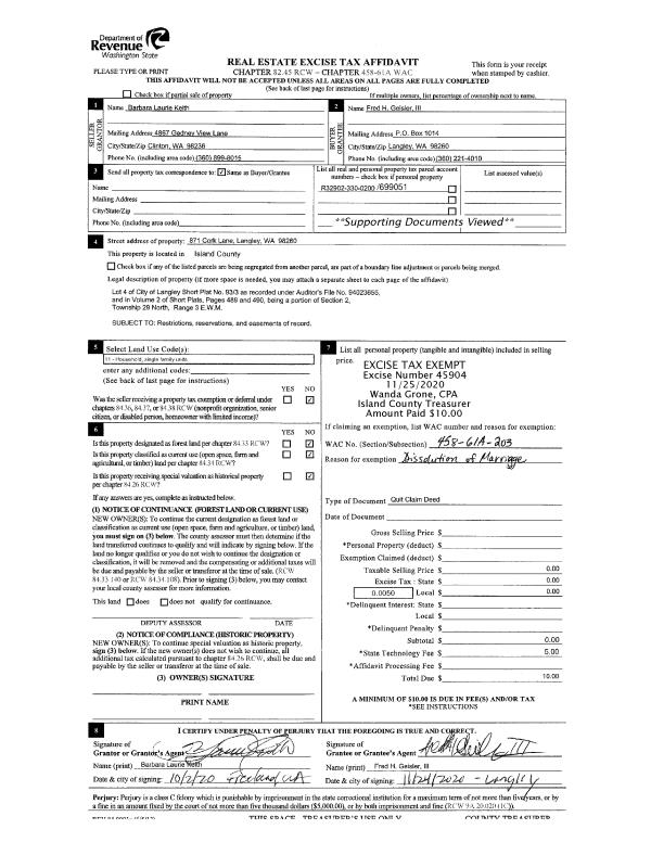 | 1 | 03/12/2021 | QCD | Quit Claim Deed | 695 ARROWHEAD LLC | NORTH CAMANO LLC | | | $0.00 | 49574 | 4526539 |