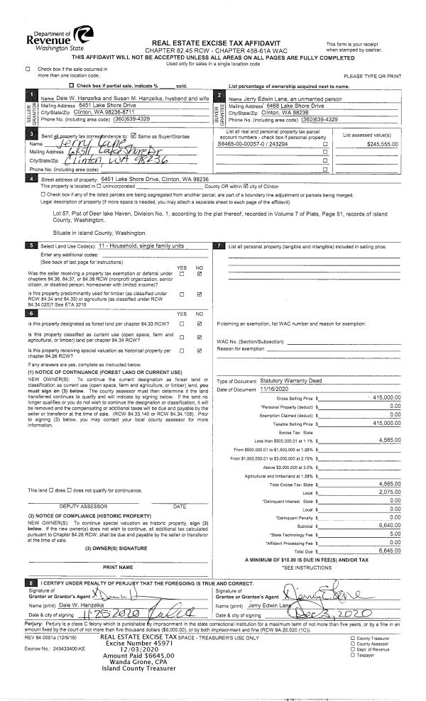 | 3 | 01/04/2021 | BARGSLD | Bargain And Sale Deed | TOWLE, HOLLY | DOTZAUER, RON | | | $450,000.00 | 46491 | 4507476 |