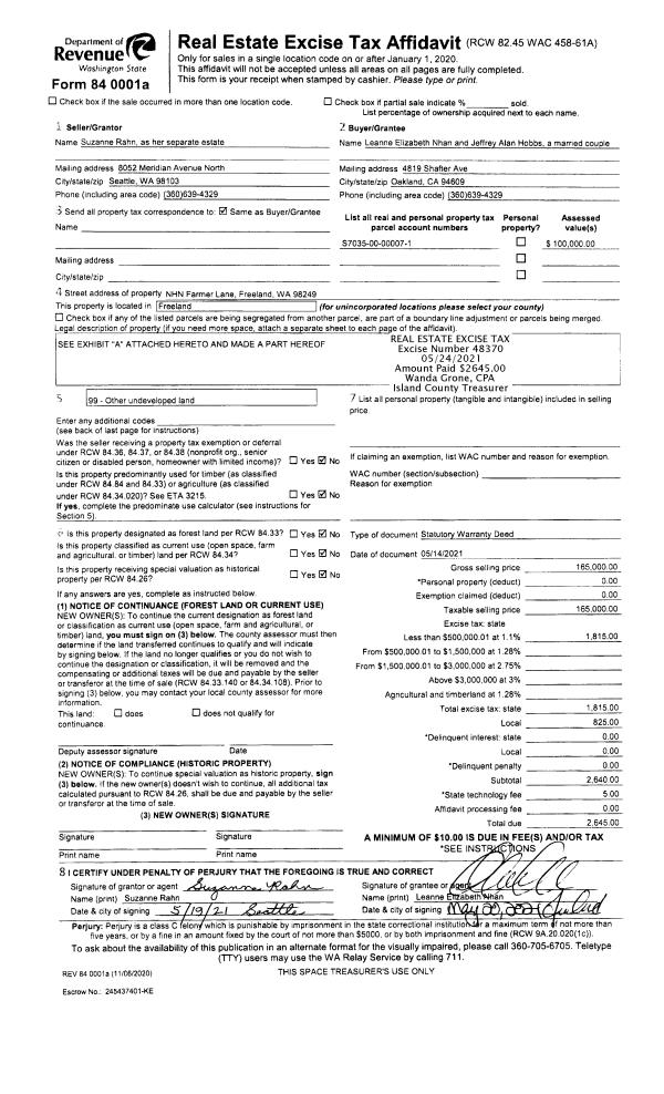 | NWHIDPRMT | P & R N Whidbey GEN | 0.2004466701 | $490,000 | $490,000 | $98.22 | | |