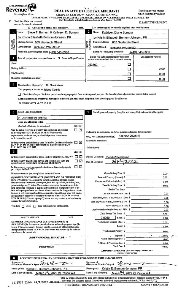 | 1 | 06/26/2018 | QCD | Quit Claim Deed | SECOND CHANCE | WHIDBEY CAMANO LAND TRUST | | | $0.00 | 34837 | 4447336 |