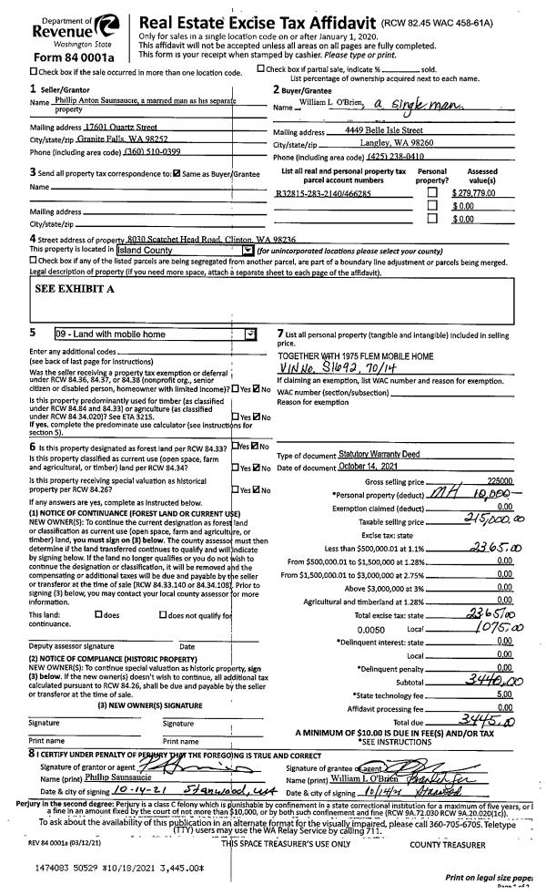 | Tax Area: | 719 - APPRAISER-S Whid Schl Dist, outside Langley, vacant & 50 acres or less | Land Use Code | 88 |