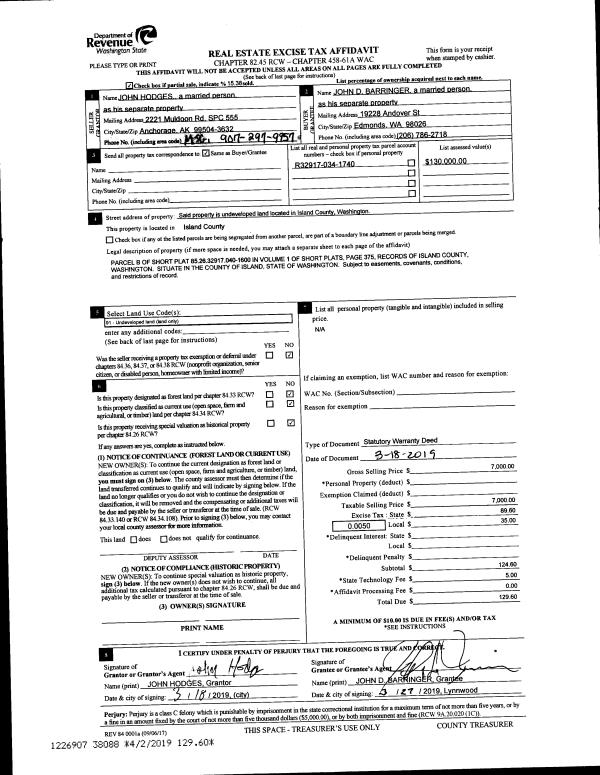 | 1 | 06/10/2002 | WD | Warranty Deed | NORTHWEST EXCHANGE & TRUSTEE I | DIAMANTI, MICHAEL A | | | $43,750.00 | 22300 | 4023083 |