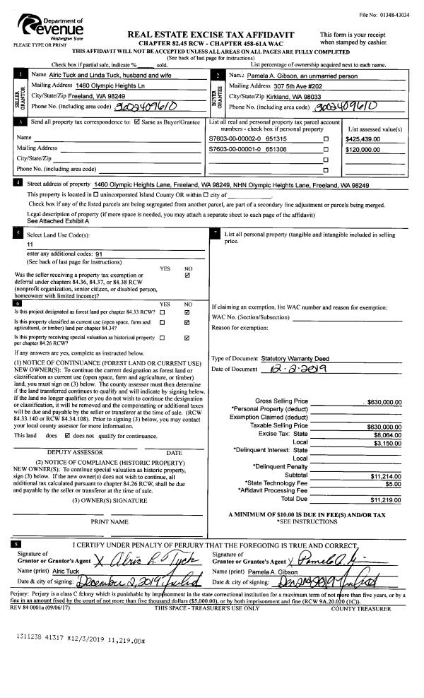 | Tax Area: | 712 - APPRAISER-S Whid Schl Dist, outside Langley, improved, greater than 1 acre | Land Use Code | 11 |